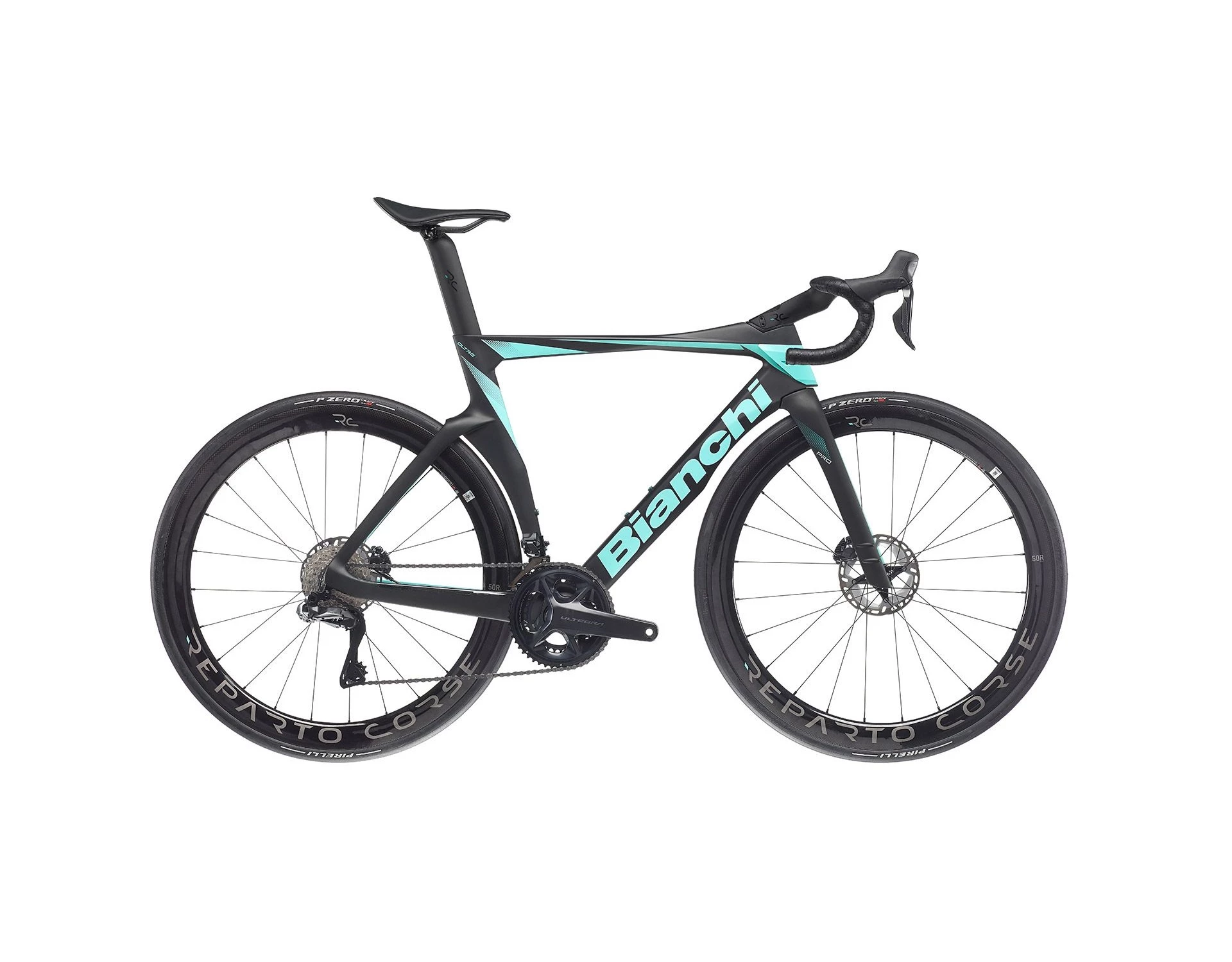 ¤ Ram: Oltre PRO kolfiber med Bianchi CV System aeroform, endast elektronisk drivlina, headset 1,1/4″-1,1/4″,BB-PressFit 86,5x41mm, integrerad sadelklämma, för flat mount bromsok, intern kabeldragning för skivbromsar.